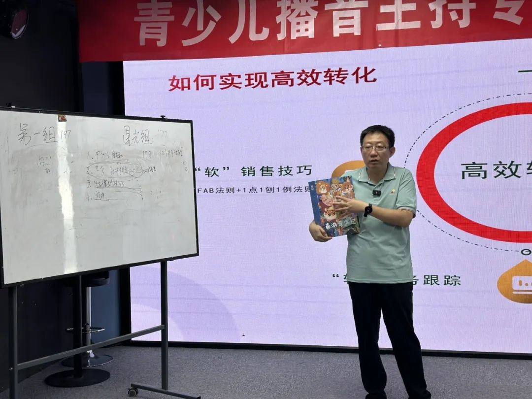 下午,针对青少儿主持考级教程四级、五级教学重点“看图说话”,提炼出多种教学方法,通过对看图说话的底层逻辑梳理,结合具体案例“人、事、物”,教会老师如何搭建“思维加工厂”并通过“情景再现、配音、舞台剧、框图”等多种教学法实操让教师学以致用,实现教学质量的飞跃。