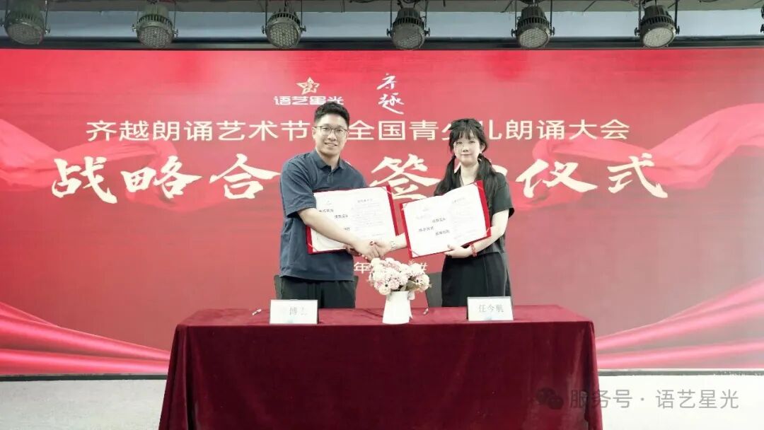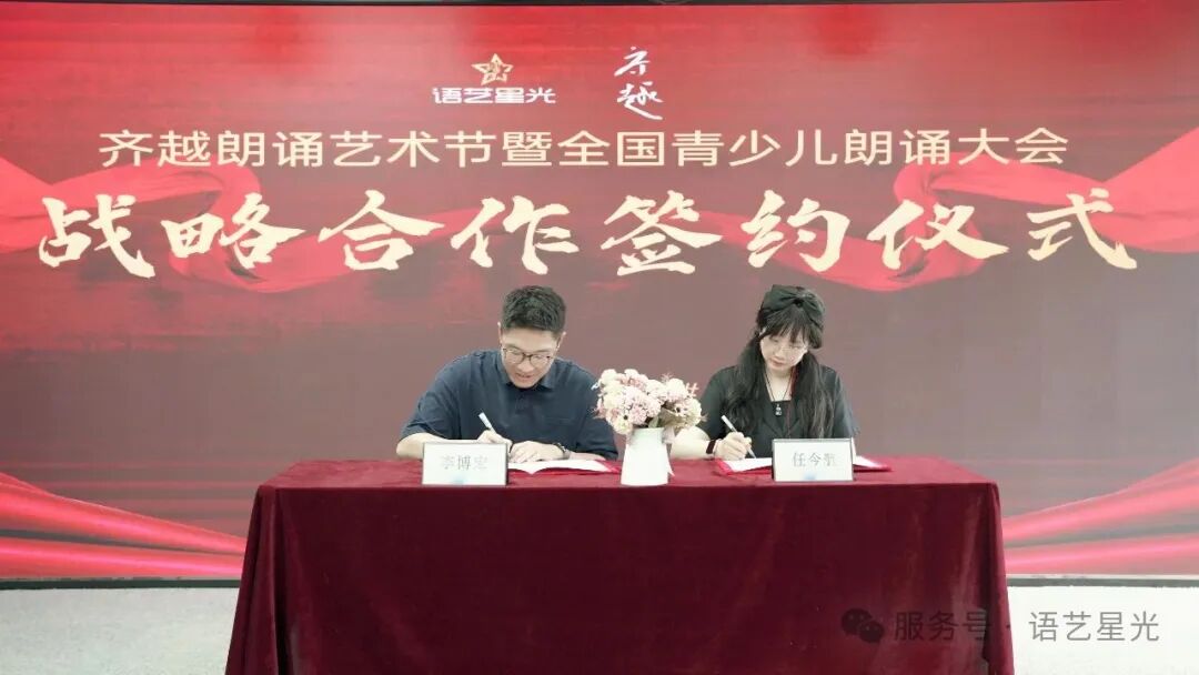 北京,2025年6月3日 — —为弘扬老一辈播音艺术家齐越先生的精神风范,推动语言艺术在青少年中的普及与发展,近日,北京斌濡齐真文化传播有限公司与北京语艺星光文化传媒有限公司在京联合举行“齐越朗诵艺术节暨全国青少儿朗诵大会”签约仪式。旨在通过朗诵艺术传承“忠诚,敬业,爱民,廉洁,奉献”的齐越精神,为全国青少儿搭建展示语言才华的舞台。